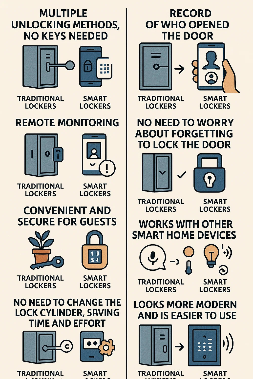 Rispetto agli armadietti tradizionali, armadietti intelligenti offrono numerosi vantaggi tangibili: